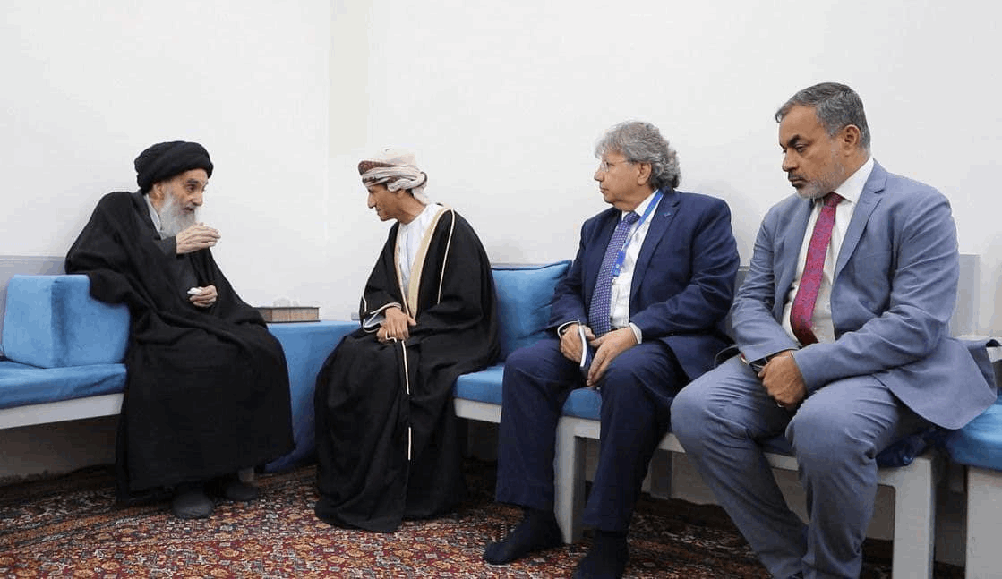 نشر مكتب المرجع الديني الأعلى السيد علي السيستاني، اليوم الاثنين، أحدث صورة للمرجع خلال لقائه مع ممثل الأمم المتحدة في العراق محمد الحسّان في مدينة النجف الأشرف.
