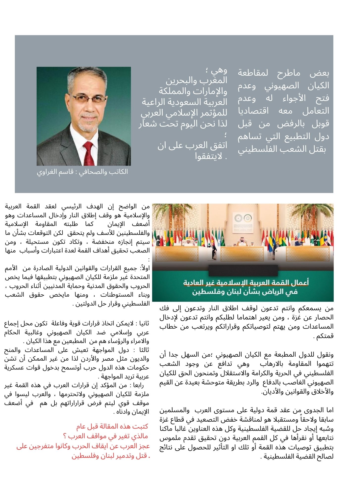 ثانيا : لايمكن اتخاذ قرارات قوية وفاعلة تكون محل إجماع عربي وإسلامي ضد الكيان الصهيوني وغالبية الحكام والامراء والرؤساء هم من المطبعين مع هذا الكيان .